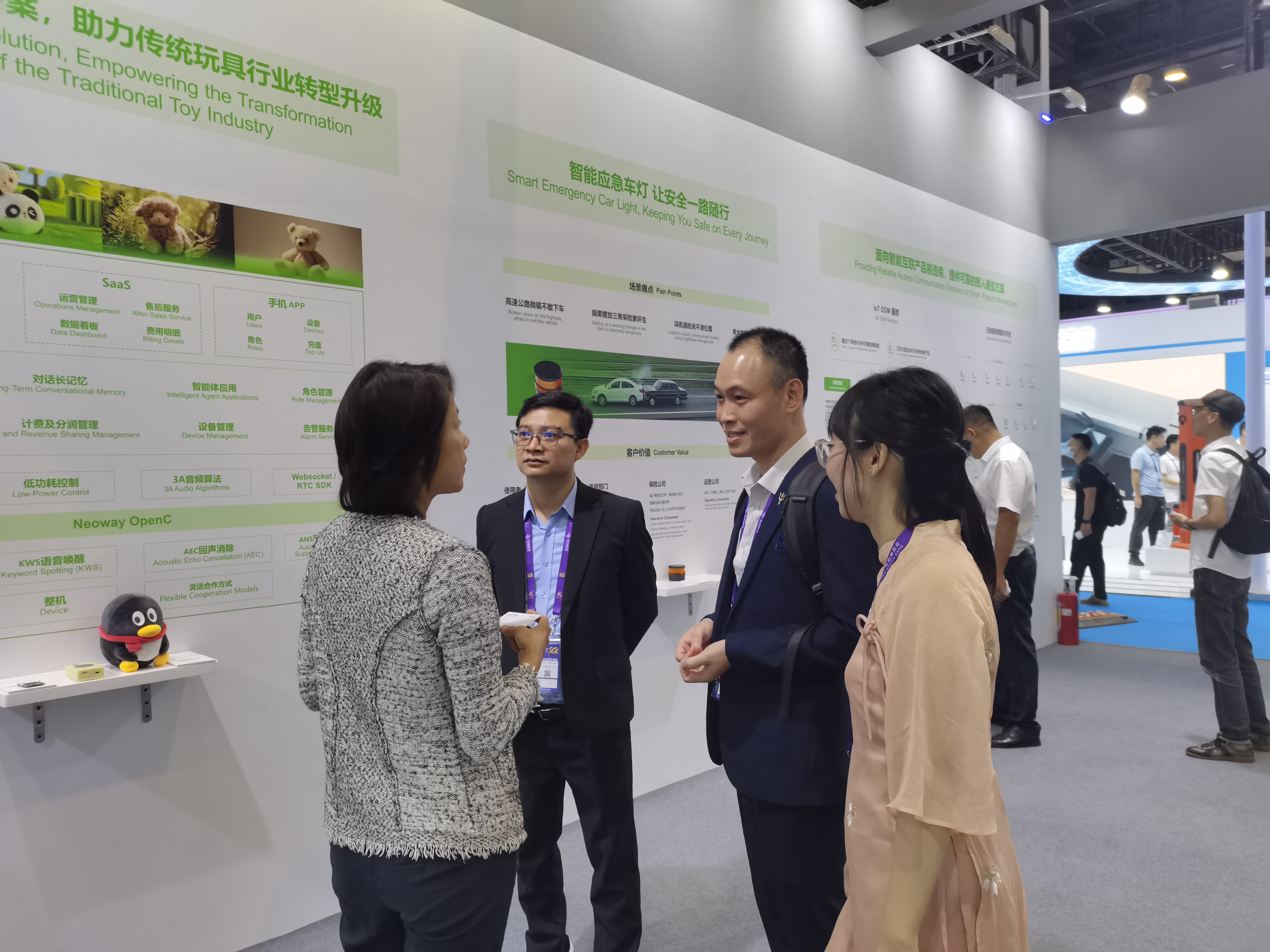 Neoway Technology also showcased AI toys equipped with its “Neoway Lingyu AI Toy Solution” to industry clients. These AI toys offer personalized companionship, educational assistance, and interactive fun, while the solution helps traditional toy manufacturers efficiently transform products into smart ones, enabling brand upgrades. The solution, which is based on a “hardware + platform + ecosystem” model, integrates voice recognition, multi-role management, device management, and large model generation technologies. It provides full-chain services from hardware design and software development to content ecosystem construction. This technology is at the cutting edge of the industry, with significant advantages in content generation and interactive experience driven by large models.