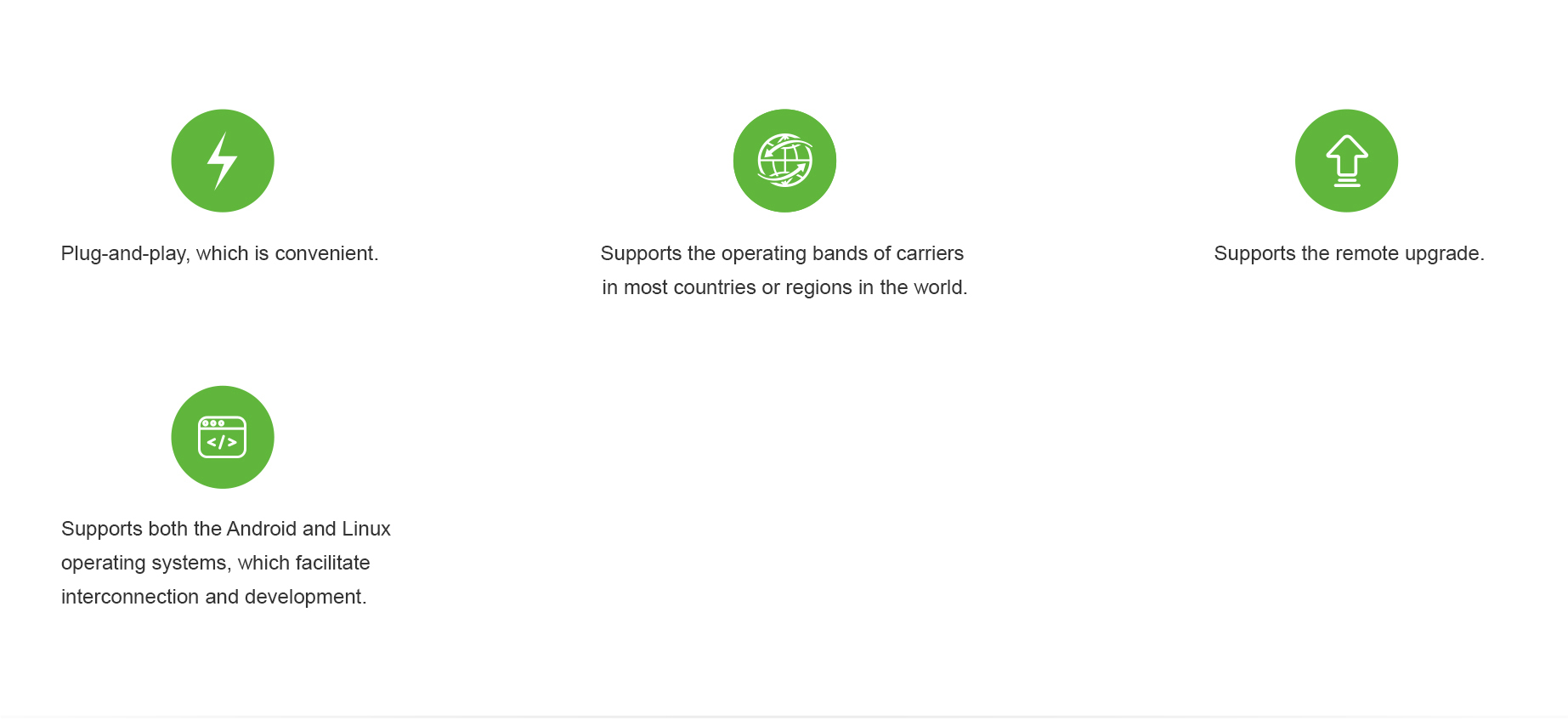 Supports the Firmware Over-The-Air (FOTA) upgrade method to ensure the optimum functions and performance of the product.